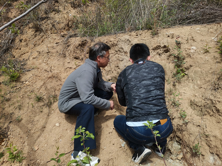 那天跟随着冯涛来到了莱西萌山金矿勘查项目钻机现场,见到刚提取出来的岩心,大家一哄而上,纷纷讨论着见矿情况,可是等一旁人都散去了,冯涛仍然蹲在那里,拿着石头,反复观察着、研究着、琢磨着。